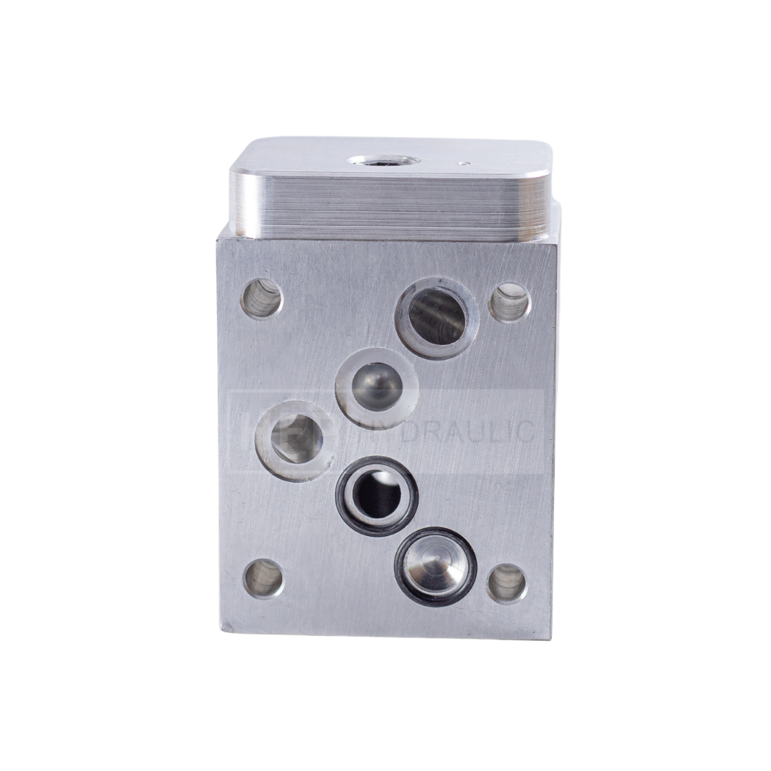 Conexiones: Presenta múltiples orificios de entrada y salida para facilitar la integración con otros componentes del sistema hidráulico.